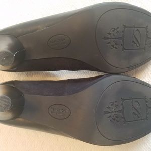 Women’s size 9.5. Black suede and smooth leather uppers with black patent leather accents. 3 inch heel. Very good, worn twice condition, no rips, tears or holes. Very comfortable. From smoke-free home.