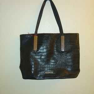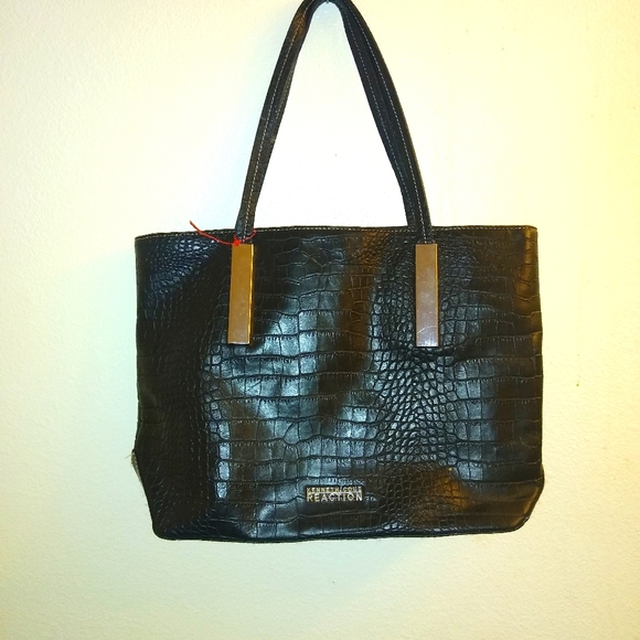 Black kenneth Cole Reaction Handbag/ Purse. With large storage departments a zip coin area two separate pockets for telephone and others 11 L X 17 W Nice size Purse Beautiful Purse