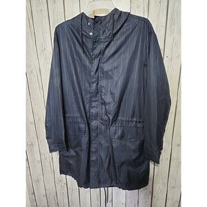 Kenneth Cole Reaction Raincoat Overcoat Large Pin Stripe Zip Snap Navy Blue $179