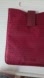 Stylish red tablet Ipad holder with secure magnetic closure. Sleek design. Logo. Lined with soft material.