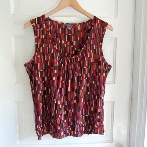 Kenneth Cole Reaction Red & Purple Multicolor Print Sleeveless Blouse L