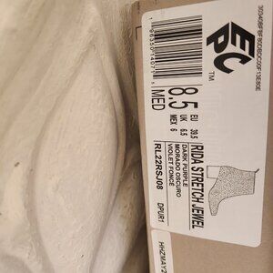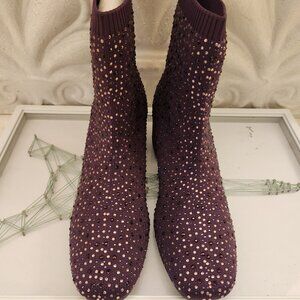 Kenneth Cole Reaction "Rida" Stretch Jeweled Booties. Purple. NIB. Size 8.5. Perfect, NIB/Original box/packaging/still in original sleeves. No rips/stains/scuffs/tears/peeling or wear. All jeweled embellishments are intact. Box has minor damage, boots are perfect. Smoke free home. No odors. All offers are welcome. Thank you!