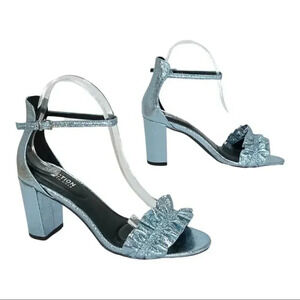 Kenneth Cole Reaction Rise Ruffle Metallic Storm Womens Heels Size 8M