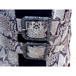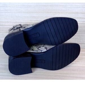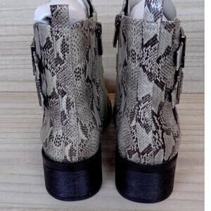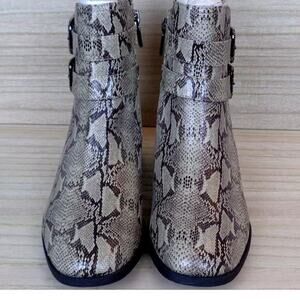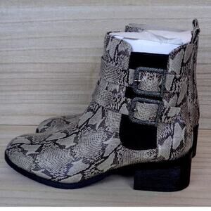 Kenneth Cole Reaction Salt Biker Jewel Chelsea Ankle Boots Side Zip Womens Size 5 Faux Leather Snake Skin Print Color Sand New With Box, box is lightly distressed