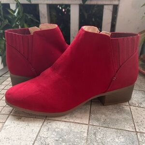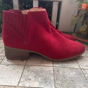 Kenneth Cole Reaction Shea Red faux Suede Ankle Boots sz 10 nwob