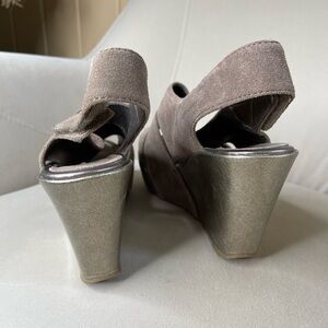 Kenneth Cole Reaction Shoes Leather sandals peep toe wedge Metallic Taupe Tan 9M