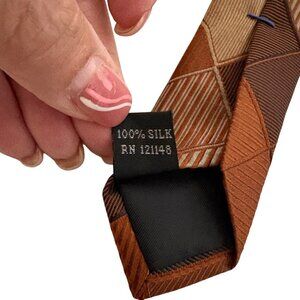 Kenneth Cole Reaction Silk Tie Geometric Brown Orange Mens Necktie Office Formal