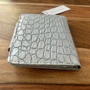 Kenneth Cole Reaction Silver Faux Leather Embossed Croc Logo Plate Bifold Wallet