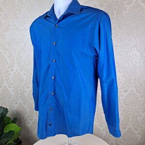 Kenneth Cole Reaction Size 14.5/32-33 Slim Fit Blue Button Down Shirt EUC