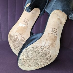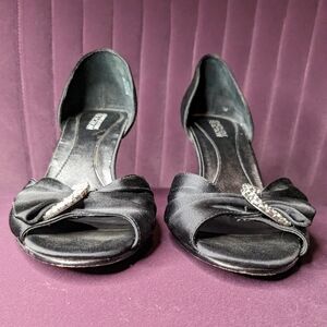 Kenneth Cole Reaction Size 7 Black Satin Formal Heels w/ Rhinestones & Leather Sole