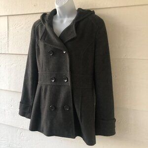 Kenneth Cole Reaction Size 8 Double Breasted Fitted Wool Blend Gray Jacket Coat