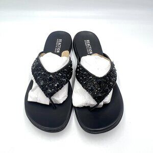 Kenneth Cole Reaction Size 9.5 Glam-Athon Black Jeweled Slides Sandals Shoes