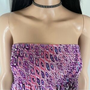Details: Comfy, Stretchy, Summer Dress, Lightweight, Falls past the knee, Purple, Pink, Sleeveless, Cover Up, Swim Suit Cover, Strapless, Smocked