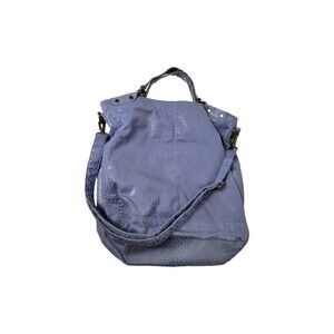 Kenneth Cole Reaction Snakeskin Bag Blue Medium Double Handle Silver Hardware