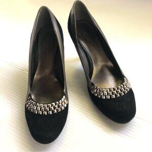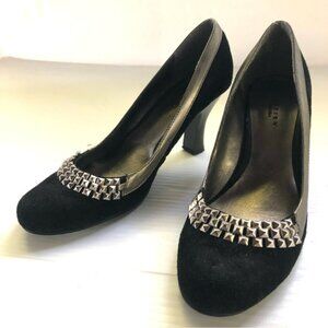 Kenneth Cole Reaction Studded Black Suede Heels Pumps 8