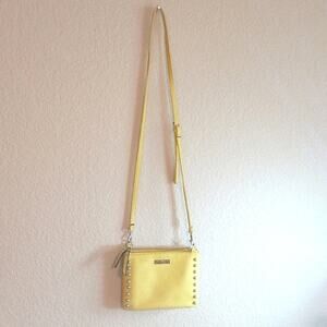 Kenneth Cole Reaction Studded Canary Yellow Pebbled Faux Leather Crossbody Bag