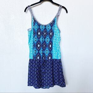 Kenneth Cole Reaction swim romper cover up, size medium. Adjustable straps. Tie at the waist. Swimsuit material.