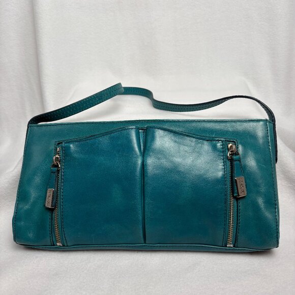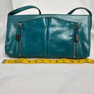 Kenneth Cole Reaction Teal-Colored Leather Shoulder Clutch Style Handbag