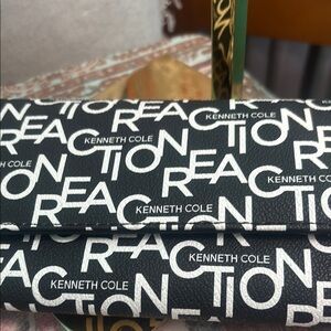 Kenneth Cole adorable wallet with bold text pattern. Has magnetic closure, separate detachable coil purse ! Lots of goin slots and zipper on front! Sleek and modern design. NWT