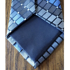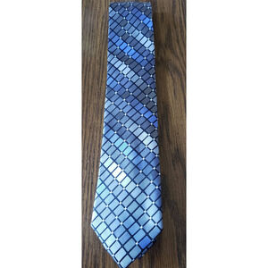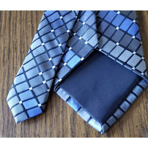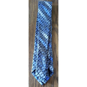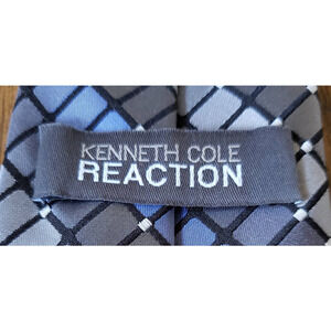 Kenneth Cole Reaction Tie Blue and Gray Square Diamond Pattern 100% Silk