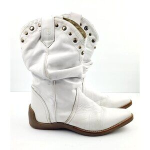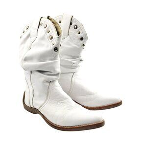 Reaction Kenneth Cole white leather western style boots. Silver tone studs. Pull on. Preloved in excellent condition. Size 7.5