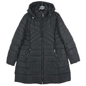 Kenneth Cole Reaction ~Woman Plus Size XXL~ Black Puffer Jacket Long Coat Hooded
