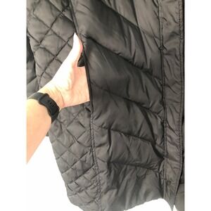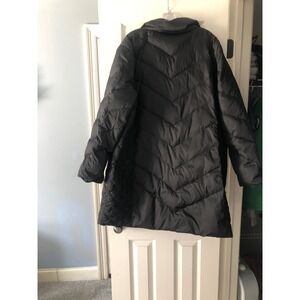 Keywords: Kenneth Cole Reaction, puffer coat, quilted coat, black coat, winter coat, plus size, chevron pattern, long coat, outerwear, warm coat, jacket