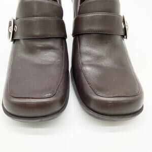 Features: Slip On, Block Heel, Buckle Accent, Square Toe
