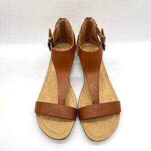 Kenneth Cole Reaction Womens 9.5 Great Gal Toffee Brown Low Wedges Sandals Shoes