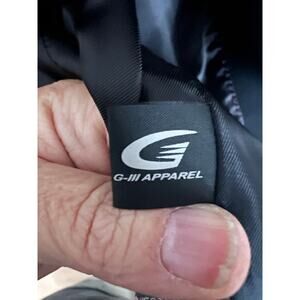 Kenneth Cole Reaction Women’s Black Wool Blend Peacoat in size 10. This classic midweight coat features a double-breasted button front with wide notched lapels, shoulder epaulets, and a belted button detail on the back. It is made by G-III Apparel Group and constructed of a 60% wool, 30% polyester, 5% rayon, 5% other blend with a 100% polyester lining. The coat is fully lined for warmth and comfort and designed in a timeless silhouette suitable for fall and winter wear.