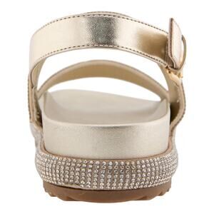 Women's Darleen Embellished Slingback Sandals from Kenneth Cole Reaction. These sandals bring both the glitz and the comfort, featuring a two band design and a slingback with adjustable buckle for a custom fit. Two piece contoured footbed sandal with adjustable slingback for all day comfort. It has faux jewels on both the upper and welt to have you turning heads. Treaded outsole for traction and durability.