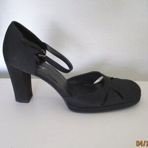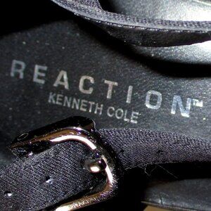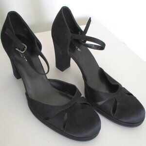 Kenneth Cole Reaction "Now + Ladder" Womens Dressy Black Satin Ankle-strap Pump w/3" Block Heel. Size 8M. Previously owned but used only once, entire shoe presents "good-as-new".