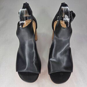 The Kenneth Cole Randee platform is a little bit sandal and a little bit shootie. Featuring an open toe and cut out sides it has an adjustable ankle strap for a personalized fit.