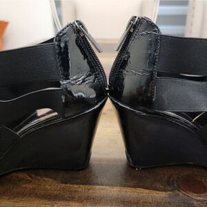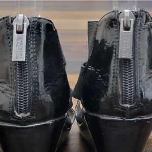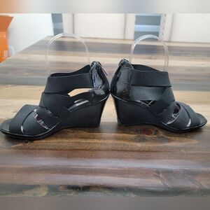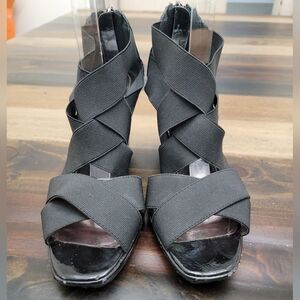 Kenneth Cole Reaction Women's 3" Heel Sandals Solid Black Back Zipper Elastic Crossed Straps Size 7.5