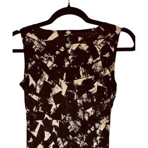 Kenneth Cole dress, abstract print dress, sleeveless dress XS, rayon black dress, white print dress, black white dress, v-neck dress, knee-length dress, Kenneth Cole Reaction, abstract black dress, casual party dress, XS summer dress, women's dress, form fitting, midi length, corporate attire