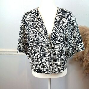 Kenneth Cole Reaction black/white abstract print 3/4 sleeve cropped jacket 12