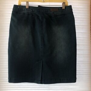 Excellent used condition. Denim skirt. Size 8. Length approximately 20.5 inches. Waist across approximately at 16.5 inches. Cotton polyester spandex. Very flattering with some stretch.