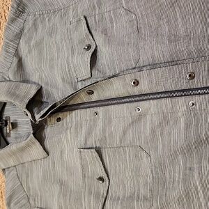 Cool shirt. Very unusual. Excellent used condition. Measurements and material descriptions are provided in the pictures. It is grayish blue.