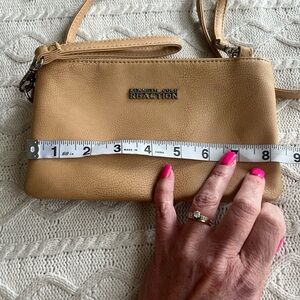 EUC excellent condition! Great quality by Kenneth Cole Reaction. Vintage. Clean. Two zipper pouches with inside zipper for even more space. Measurements in photos. Small crossbody. Small smudge on outside barely noticeable. See photos. Great deal! Smoke free home. Caramel tan color.
