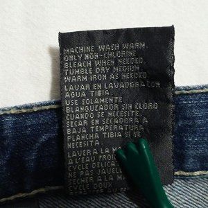 Kenneth Cole Reaction toddler boys' jeans. Size 3T. Medium light blue denim. Back pocket pleat detail. Waist 21" (53 cm), inseam 14" (36 cm). 100% cotton. Zipper fly front with top snap. Manufactured fading and wash wear. Location 1498-cI-PEX. Non-smoking cat-friendly home.