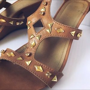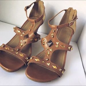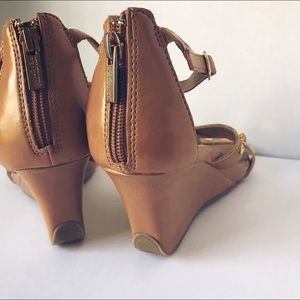Super cute tan Kenneth Cole Reaction wedges with rhinestone detailing. Zipper at the back of the heel. Pre-love, excellent condition. Perfect with a flirty dress!