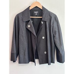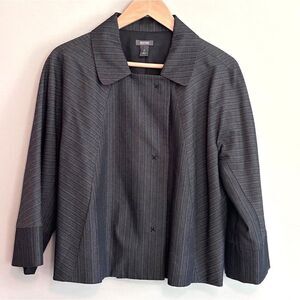 Kenneth Cole Reaction Cropped Swing Blazer Jacket Charcoal Grey Light Striped