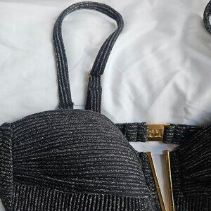 Kenneth Cole SZ S Black Metallic Shine Bikini TOP