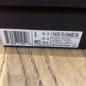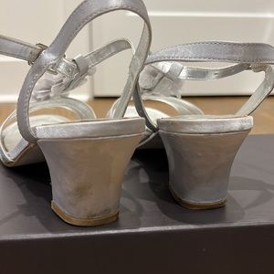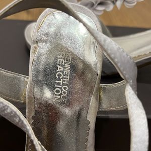 Kenneth Cole Reaction light silver sandals size 6. Worn once for a wedding. In good condition but do have a few minor flaws not visible when worn. Please inspect photos.