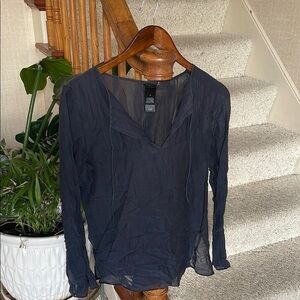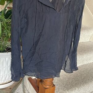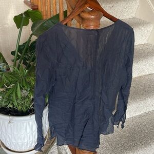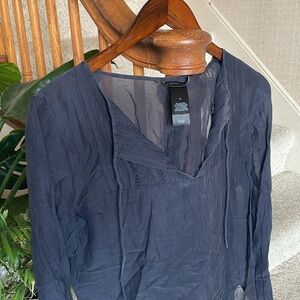 Kenneth Cole Silk Cotton Elegant Navy Blue Women's Tunic Top