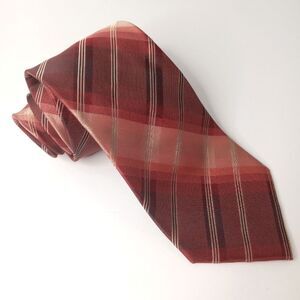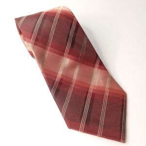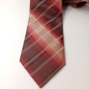 Kenneth Cole Silk Tie Burgundy Peach Plaid Classic Necktie 60"