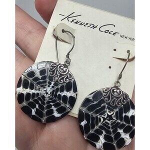 Kenneth Cole Silver Spider Web Design Black Coral Shell Dangle Earrings NEW