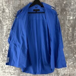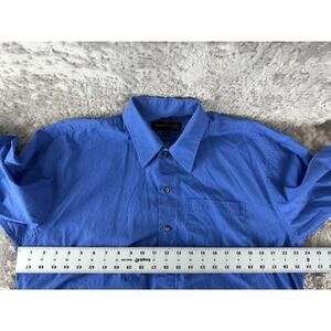 Kenneth Cole Size 16 32-33 Cotton Button Shirt Blue Long Sleeve Collar Pocket
