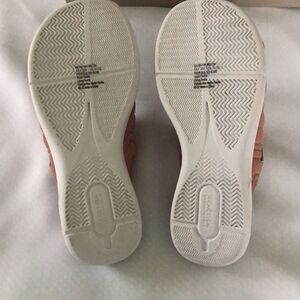 Please note the box is not included as it has no lid. These are brand new never used. Fabric uppers. The balance is man-made. Medium width. The color is blush pink.
