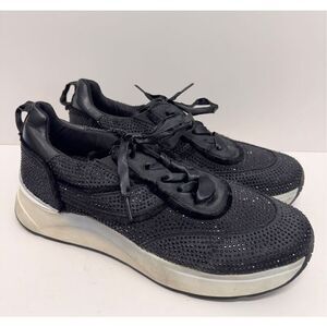 Kenneth Cole Sneakers Womens Size 7.5‎ Black Rhinestone Ribbon Ties